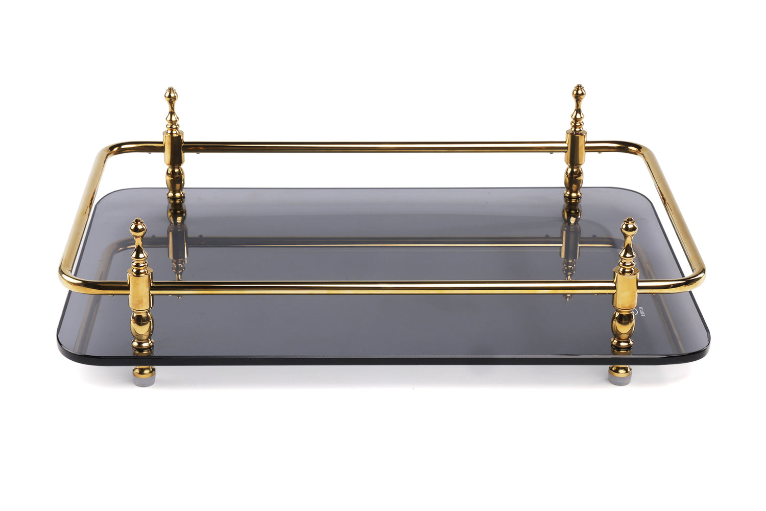 18 inch Rectangle Black Granite Stone Serving Tray with Gold Handles
