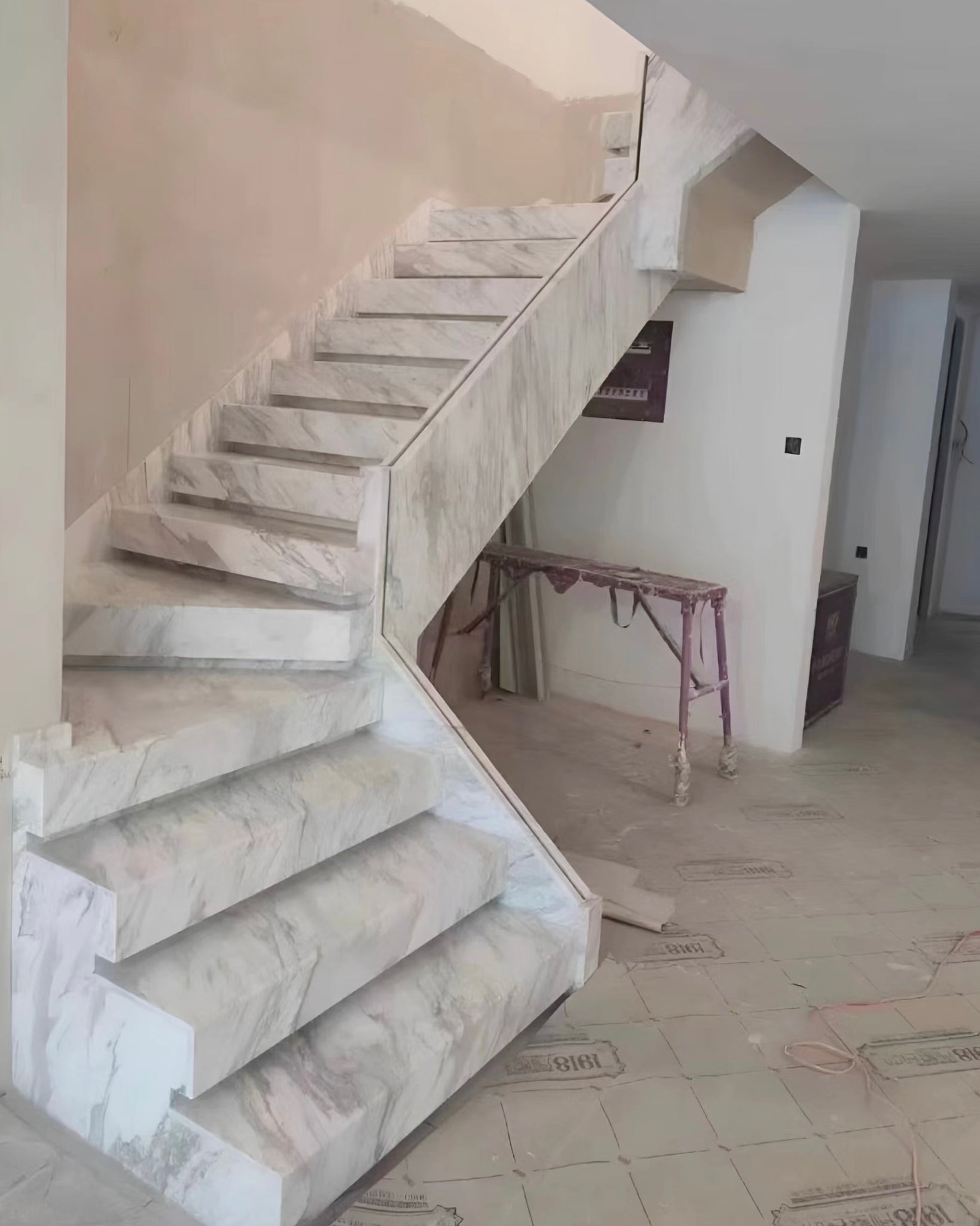 - الأرضيات: يُعد رخام فولكاس خيارًا مثاليًا لخلق أجواء فخمة وبسيطة في تركيبات الأرضيات. تضفي خلفيته البيضاء الناصعة إحساسًا بالرحابة والاتساع على المكان. كما أن لونه الأبيض اللامع وعروقه الفريدة تجعل المكان يبدو منعشًا ومفتوحًا، ويسهل تنسيقه مع مواد وأنماط ديكور أخرى.