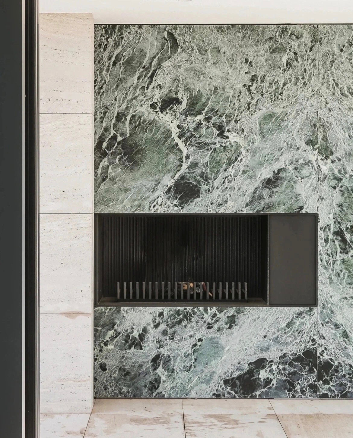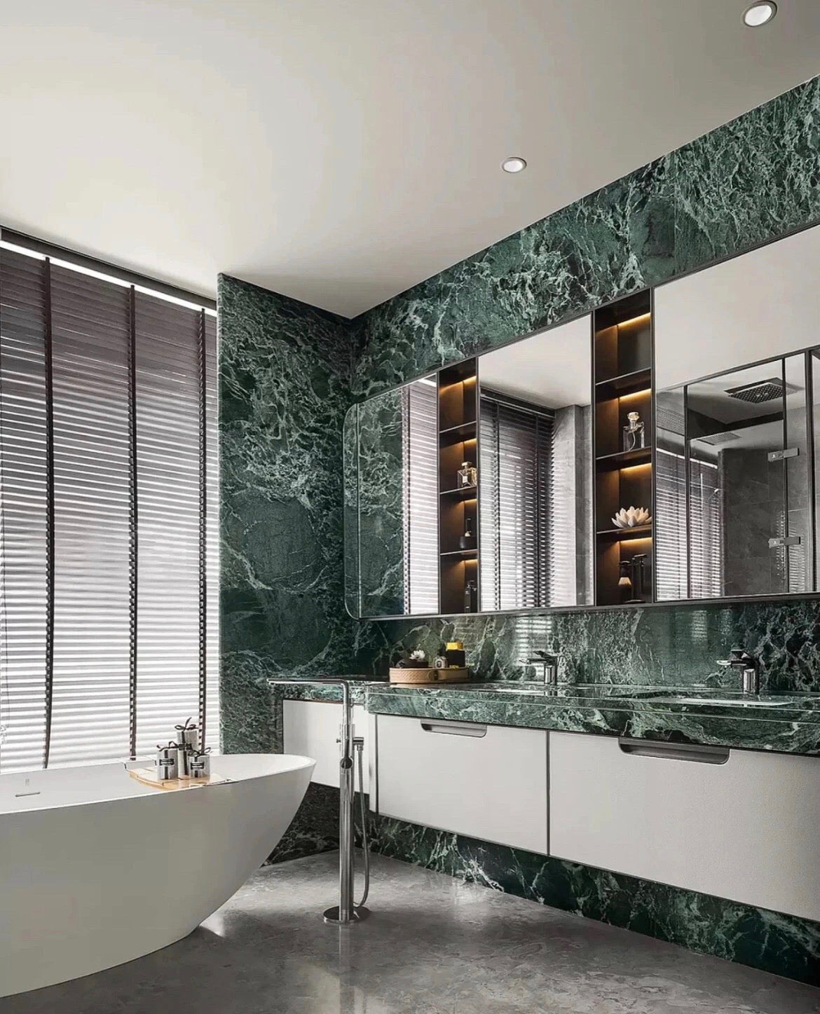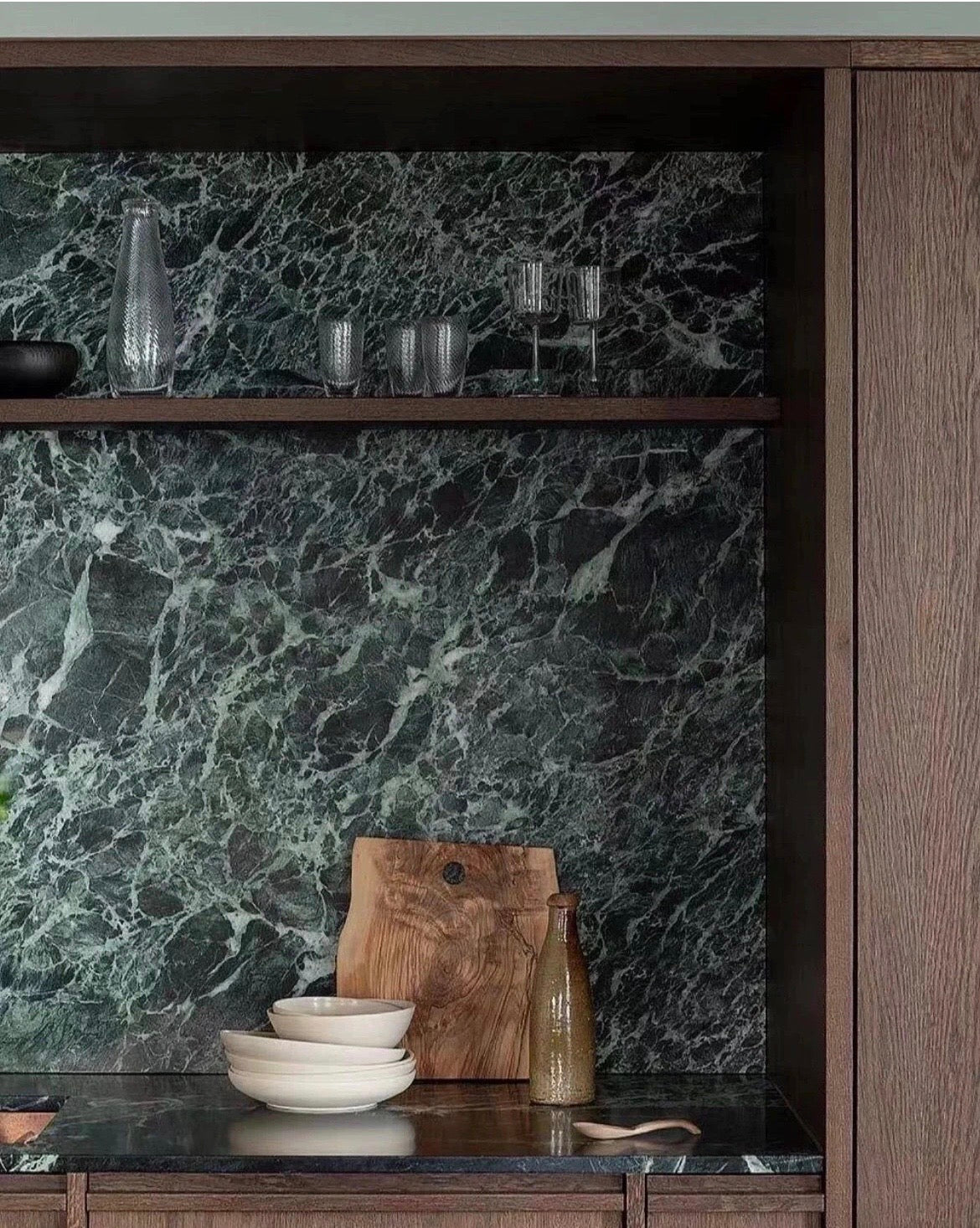 3. Interior Walls: Using Forest Green Marble as wall decor can bring a natural artistic ambiance to a room. Whether it's extensively used or selectively placed as accents, it creates a gem-like space that complements the soft furnishings, reducing the cold and rigid feel while highlighting its unique beauty. Its distinctive texture and color turn the walls into a visual focal point, enhancing the charm of the space.