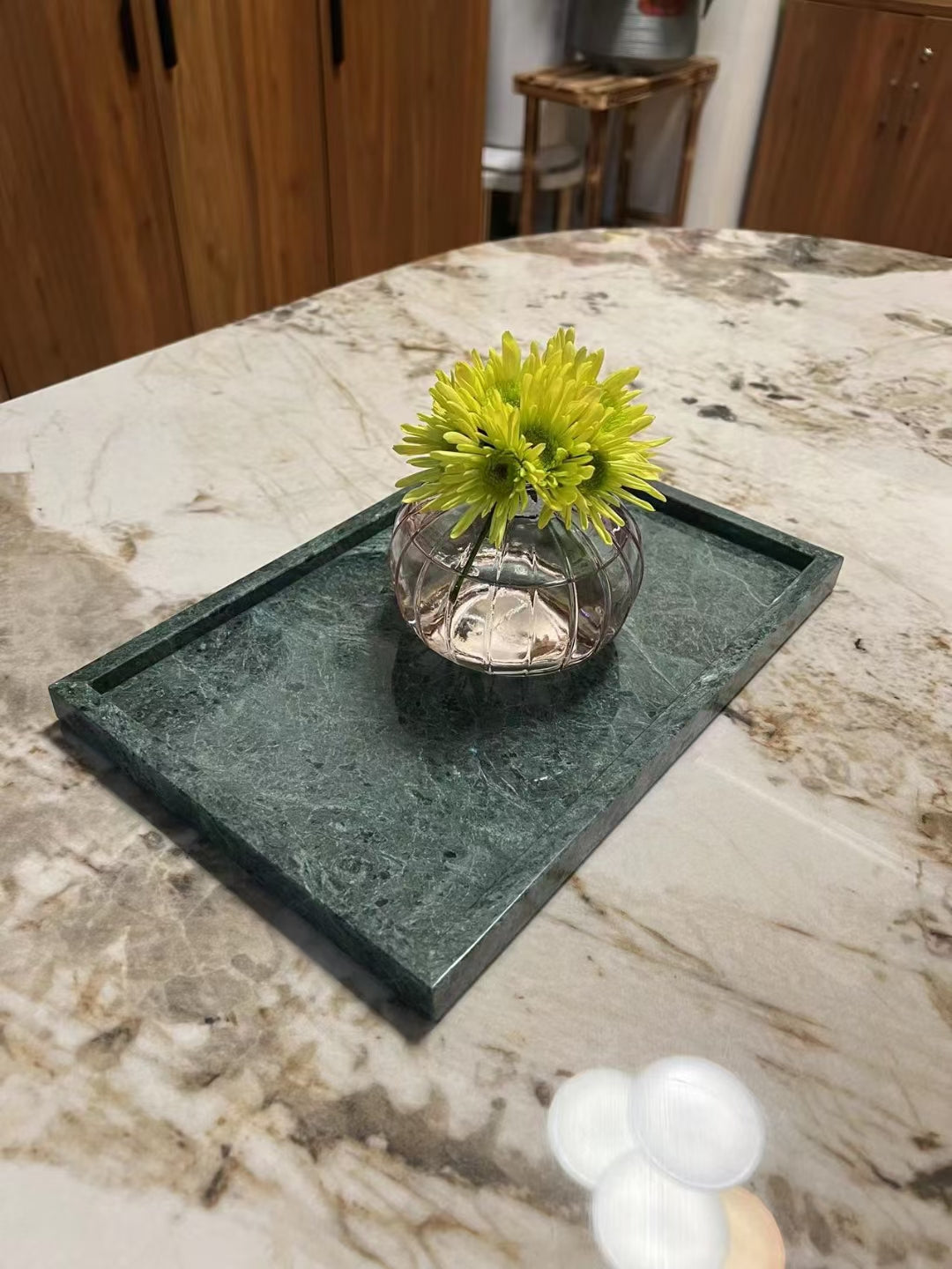 2. Dining sets:Forest Green Marble can also be used to make dining sets, such as coasters and trays.The gem-like texture of Forest Green Marble adds artistic and personalized elements to the room, creating a unique and exquisite interior design. It remains equally stunning and captivating in any lighting.