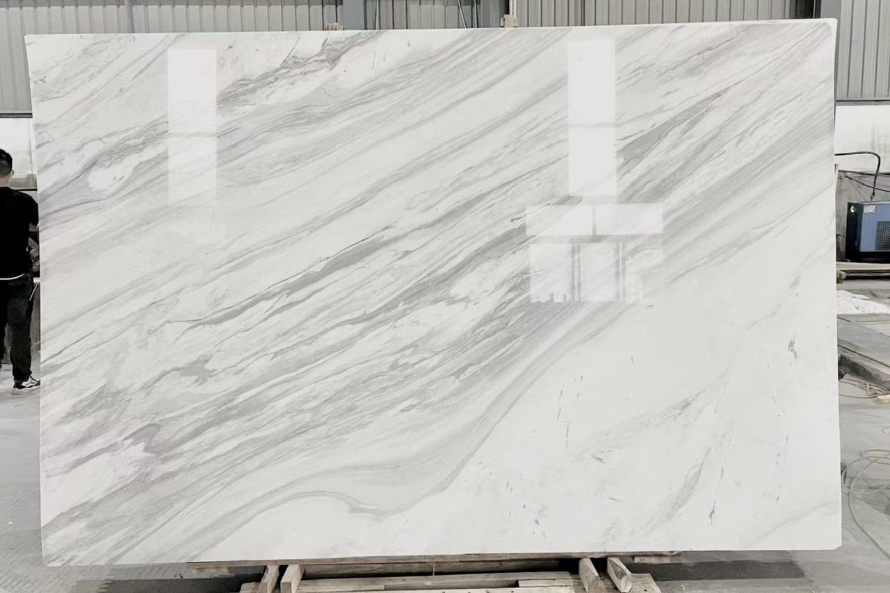 Volkas Marble is a high-quality marble stone renowned for its unique white background and grey veining. Typically presenting a range of light grey to white base colors, Volkas Marble forms a series of wavy patterns on its surface, showcasing rich texture and excellent decorative performance. Its purity resembles the breathtaking beauty of snow-capped mountains, evoking a sense of ethereal charm.