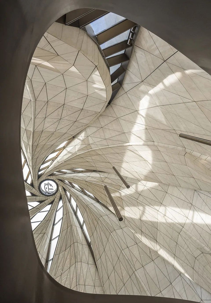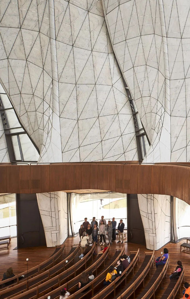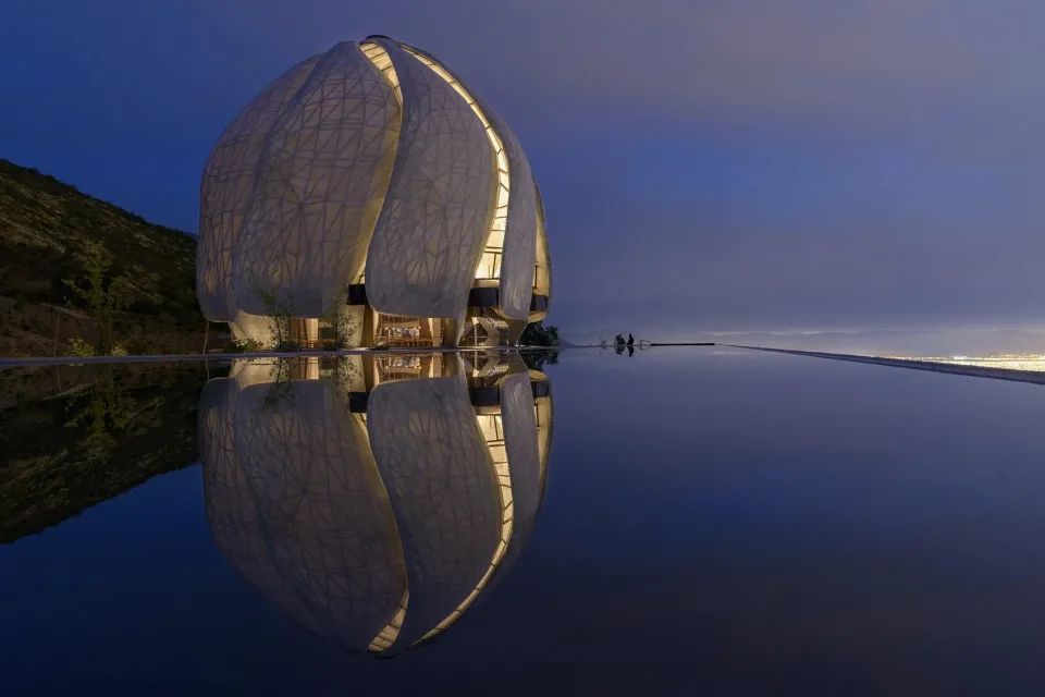 This was originally the golf course of the San Diego Elite Farm School. After 9 years, the site was redesigned into a public building open to the public of different backgrounds, religions and genders. "Building a sanctuary that welcomes all religions and cultures" is a challenge to architecture. It means that the architect Siamak Hariri has to think about what form to give it to make the building have this meaning. Facing this challenge, Siamak Hariri and his team gave up taking inspiration from other religious buildings. If the Bahá'í temple looks like a mosque, synagogue or church, it is very likely to alienate people who believe in other religions. Therefore, the openness and permeability of the site and structure are very important in architectural design. Structurally, the Bahá'í temples exhibit a universal attraction as a place for "people". The nine uniquely shaped "wings" form an elegant aggregation in a twisted posture, and finally converge in the top window opening, creating a light rhythm around the central space connected to the ground. The material on the outside of this structure is 1129 pieces of cast glass panels that have been tested and tested for four years, while the translucent marble that creates a white and warm texture comes from Portugal.
