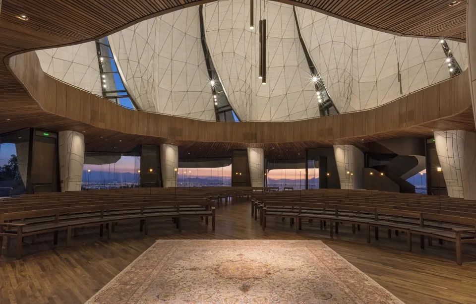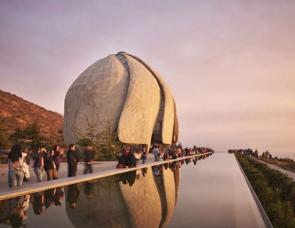 The South American Bahá'í Temple is located on the outskirts of Santiago, the capital of Chile, at the foot of the Andes Mountains. It is the eighth Bahá'í House of Worship in the world. The project was designed by the outstanding Canadian architect Siamak Hariri, and it took 14 years to complete the construction. It is an eternal and inspiring architectural achievement. It uses space and light, form and material as language to explain the philosophy and teachings of Bahá'í, making it a spiritual place for everyone.