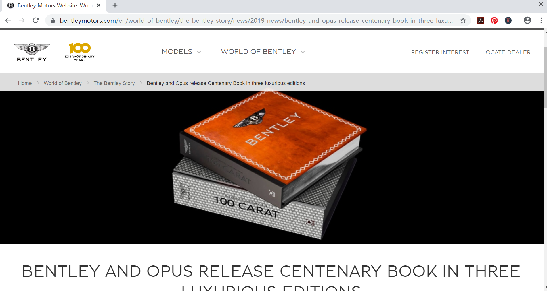A screenshot from the Bentley Motors webpage