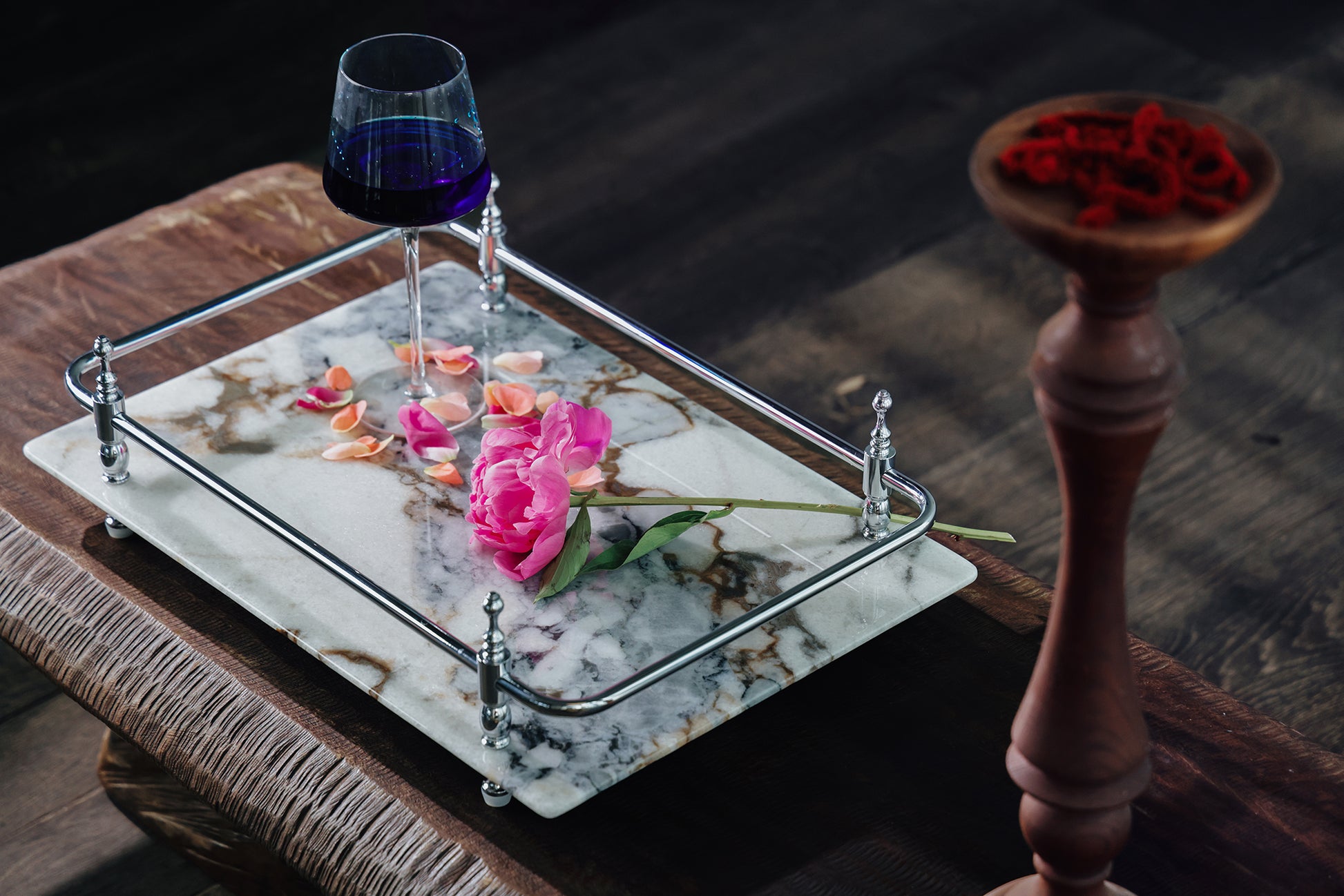 Masterfully sculpted from the dramatic veins of Chinese ‘Hurricane’ marble, this patented lightweight tray captures the raw energy and classical beauty of nature. Designed to elevate both grand entertaining and serene daily rituals, its cool, striking presence commands attention as a party centerpiece or brings orderly calm to your kitchen, bath, or lounge.