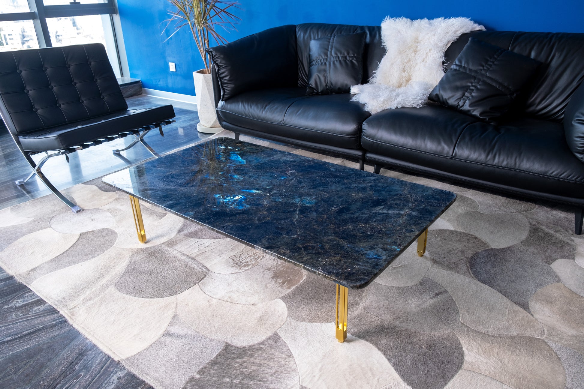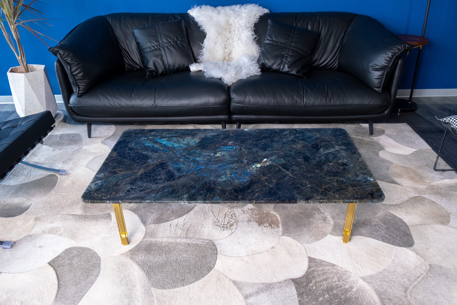 - An eye-catching coffee table is used for books and decorations, or a snack tray, while gold and marble finishes combine to make the best decoration too.